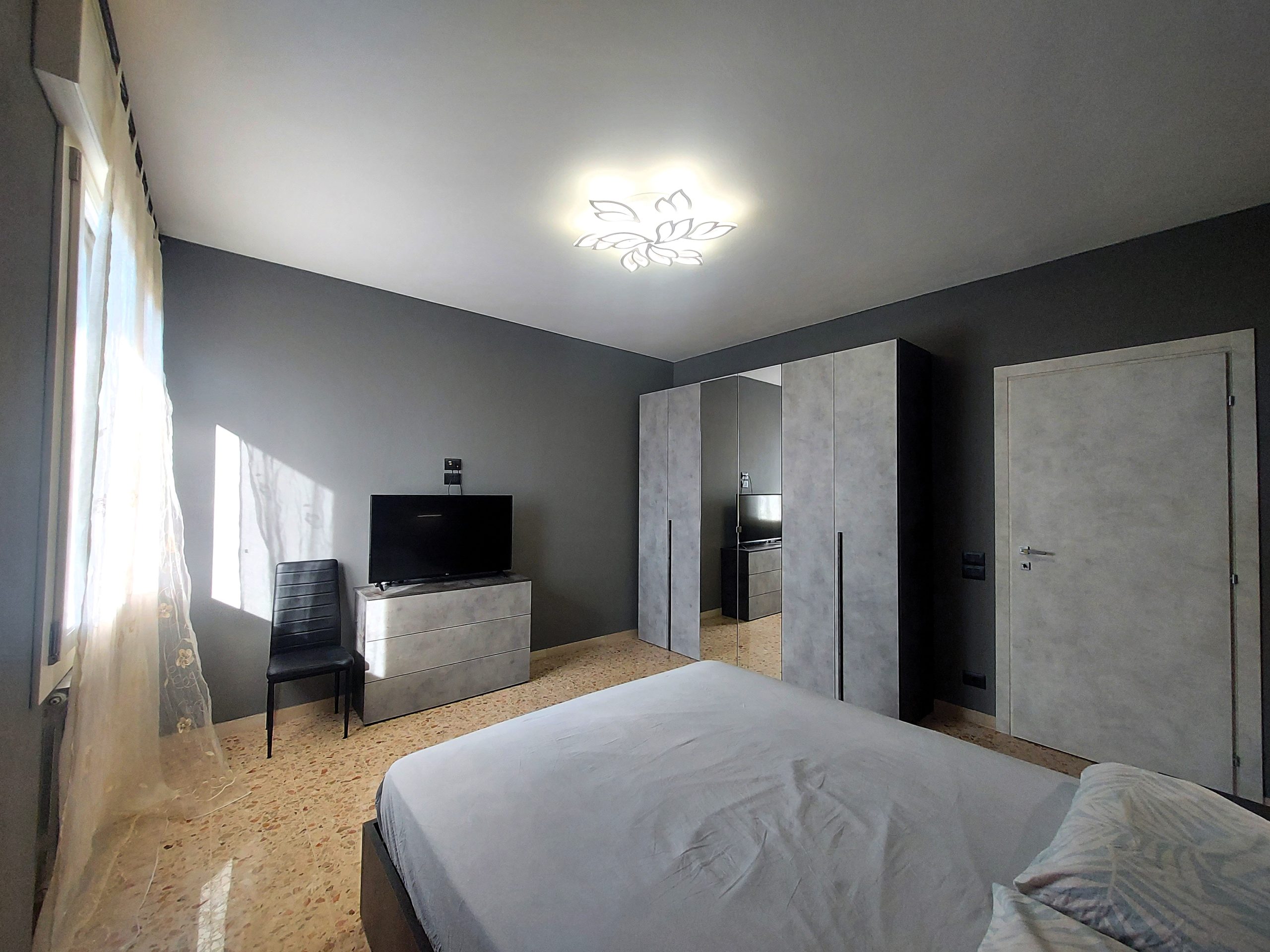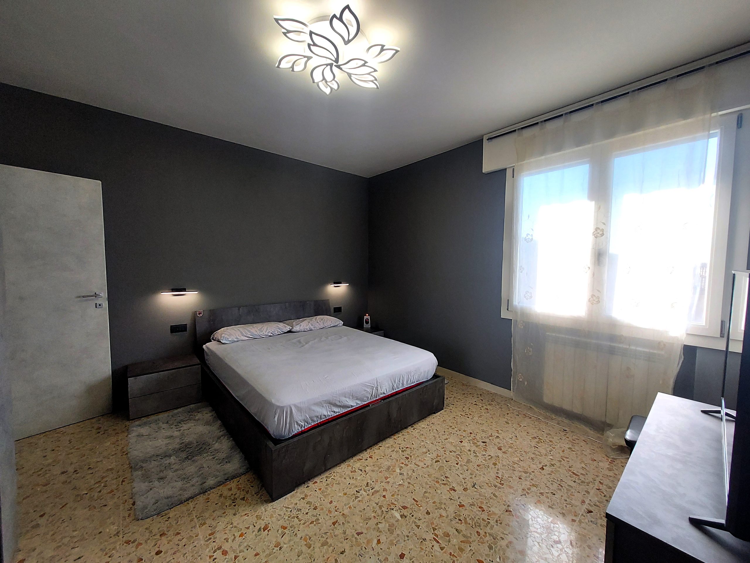 Le tre spaziose camere da letto si configurano come due matrimoniali (circa 16 mq) e una singola (circa 12 mq), mentre il bagno finestrato con doccia ha una metratura di circa 5 mq.